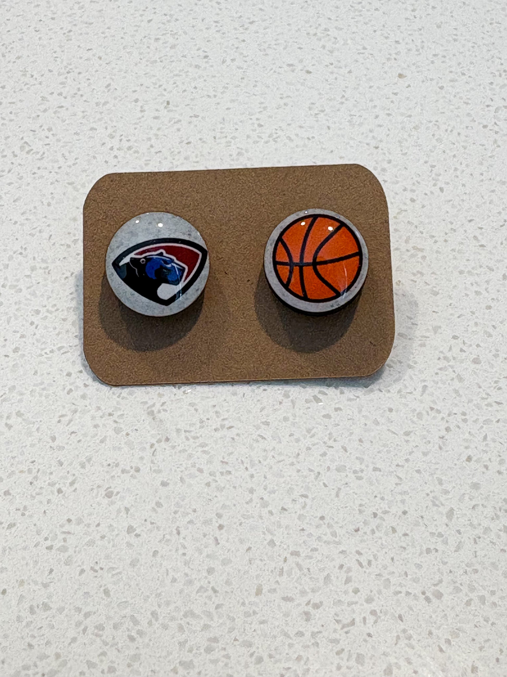 MDF stud earring sublimated and personalized with team Logo and your Players number or two logos. The stud backing is made from surgical stainless steel and very friendly to sensitive ears.