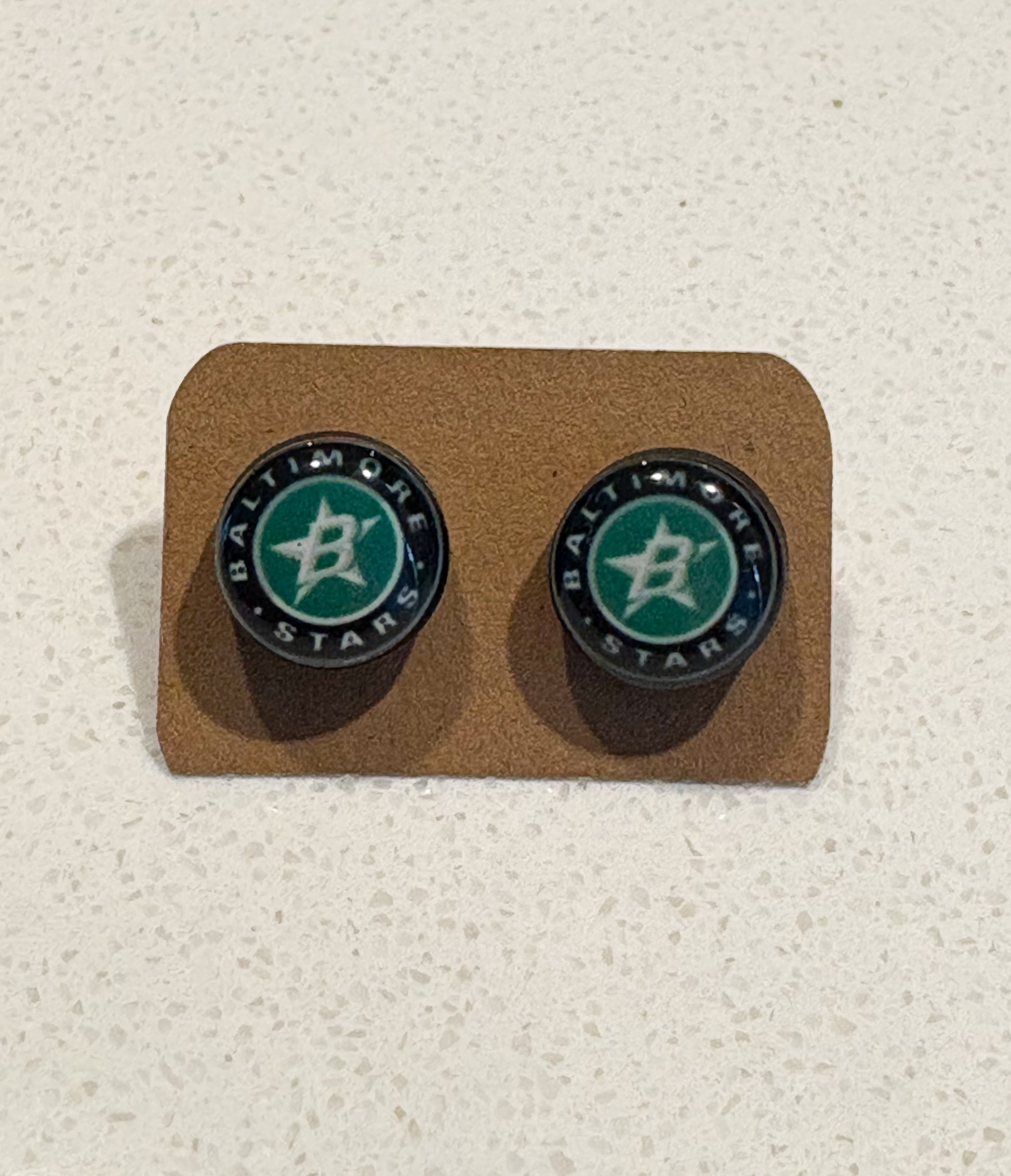 MDF stud earring sublimated and personalized with team Logo and your Players number or two logos. The stud backing is made from surgical stainless steel and very friendly to sensitive ears.