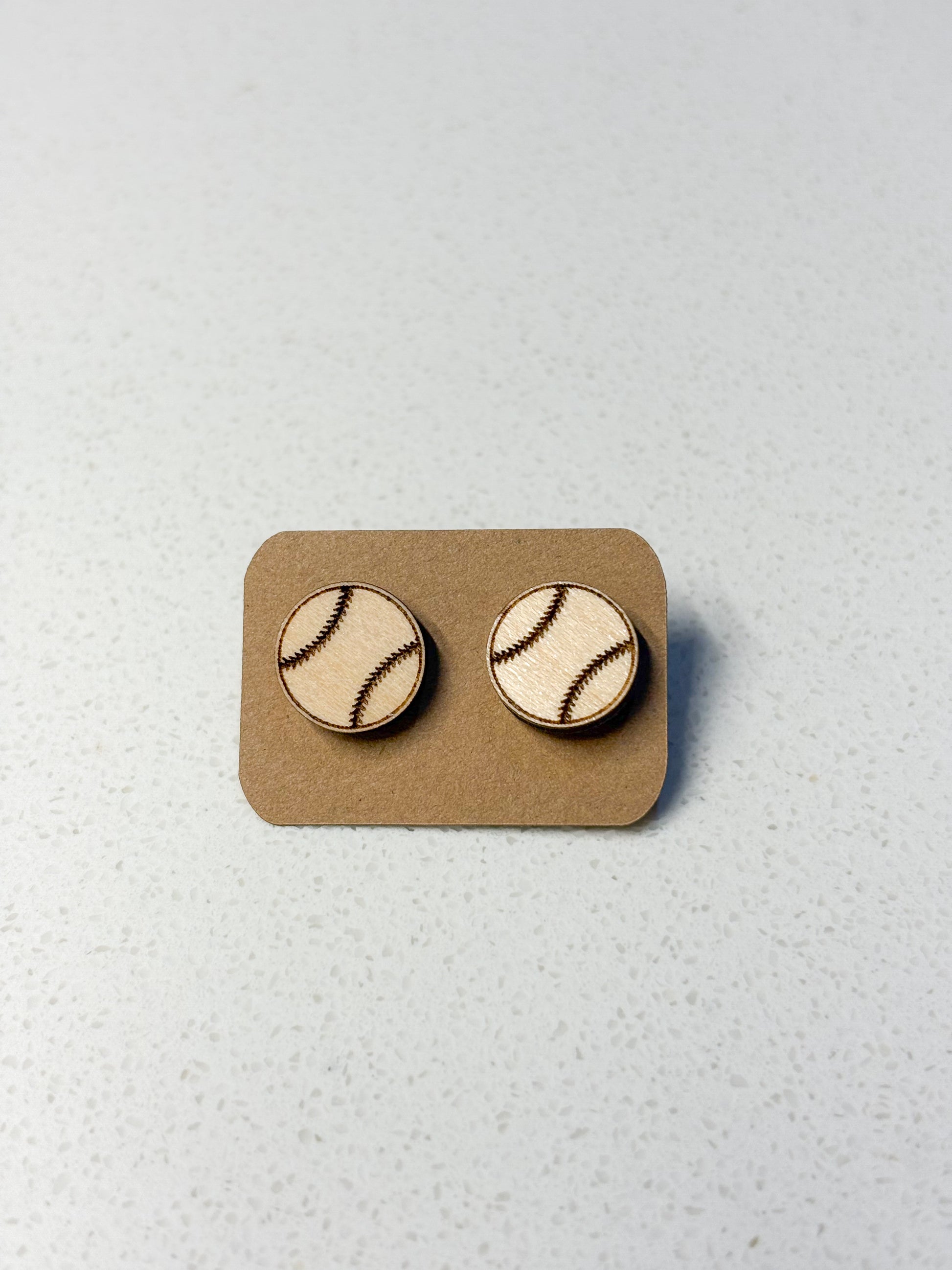 Maple wood engraved stud earrings. The stud backing is made from surgical stainless steel and very friendly to sensitive ears.