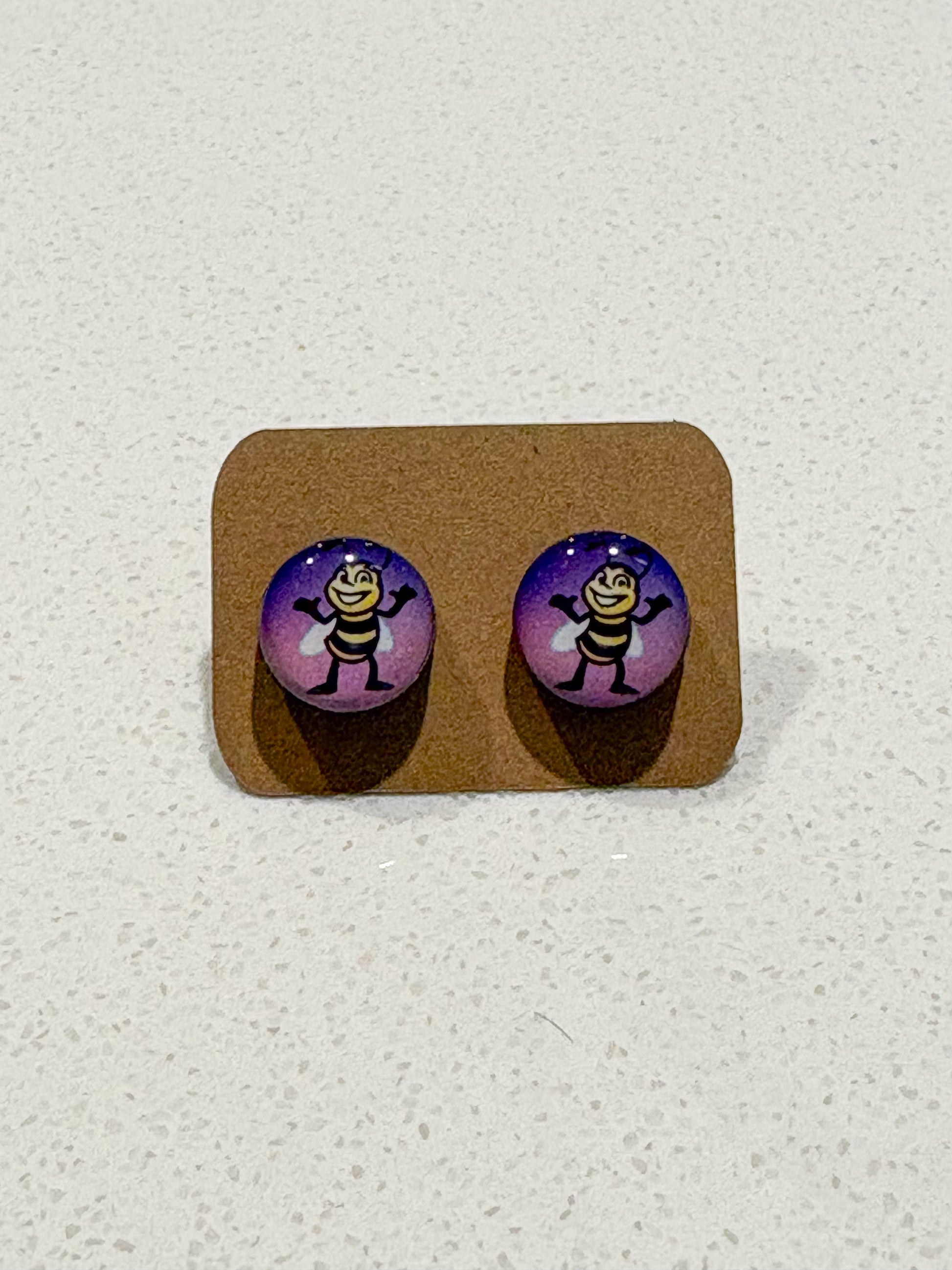 MDF stud earring sublimated and personalized with team Logo and your Players number or two logos. The stud backing is made from surgical stainless steel and very friendly to sensitive ears.