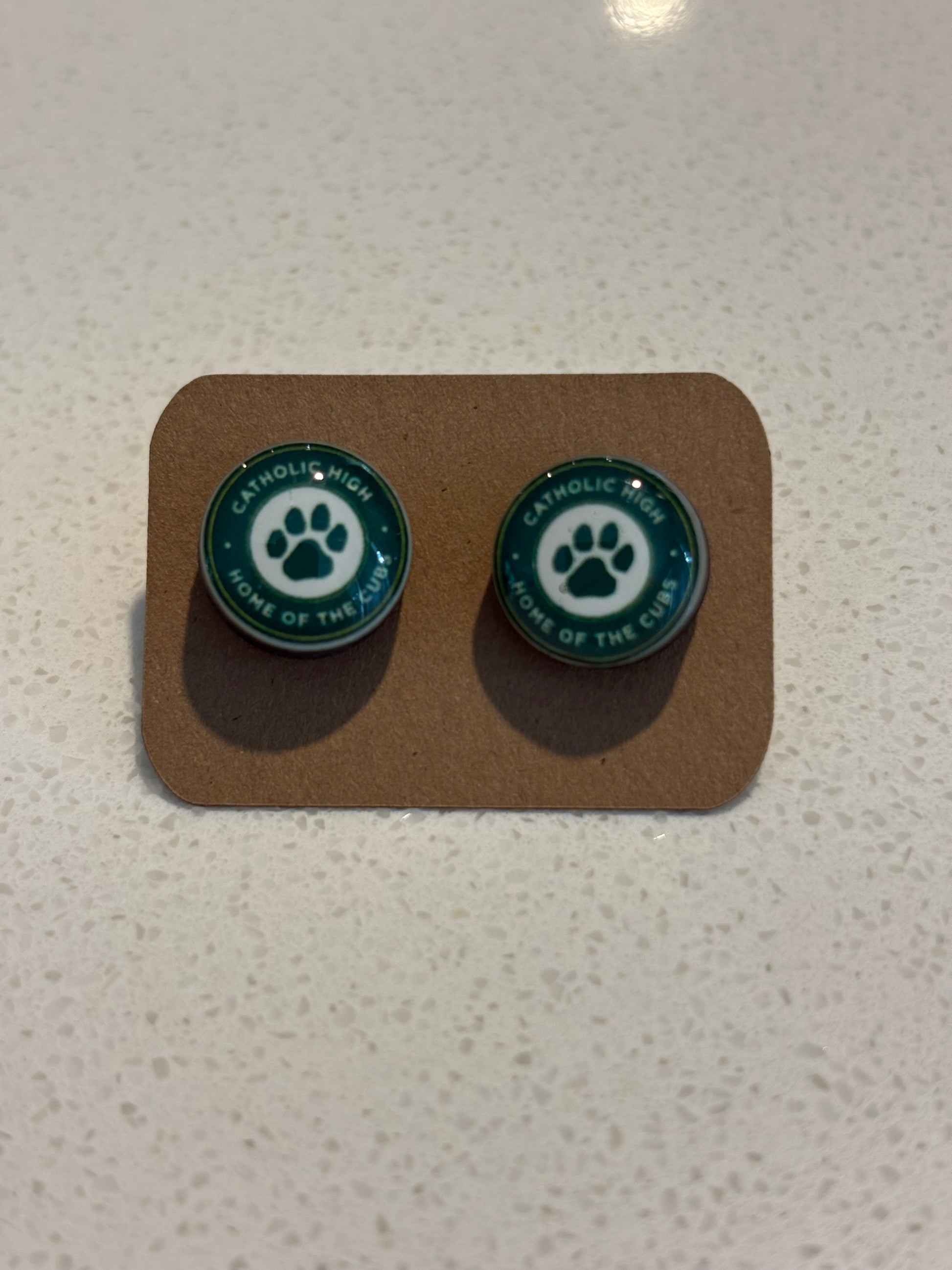 MDF stud earring sublimated and personalized with team Logo and your Players number or two logos. The stud backing is made from surgical stainless steel and very friendly to sensitive ears.
