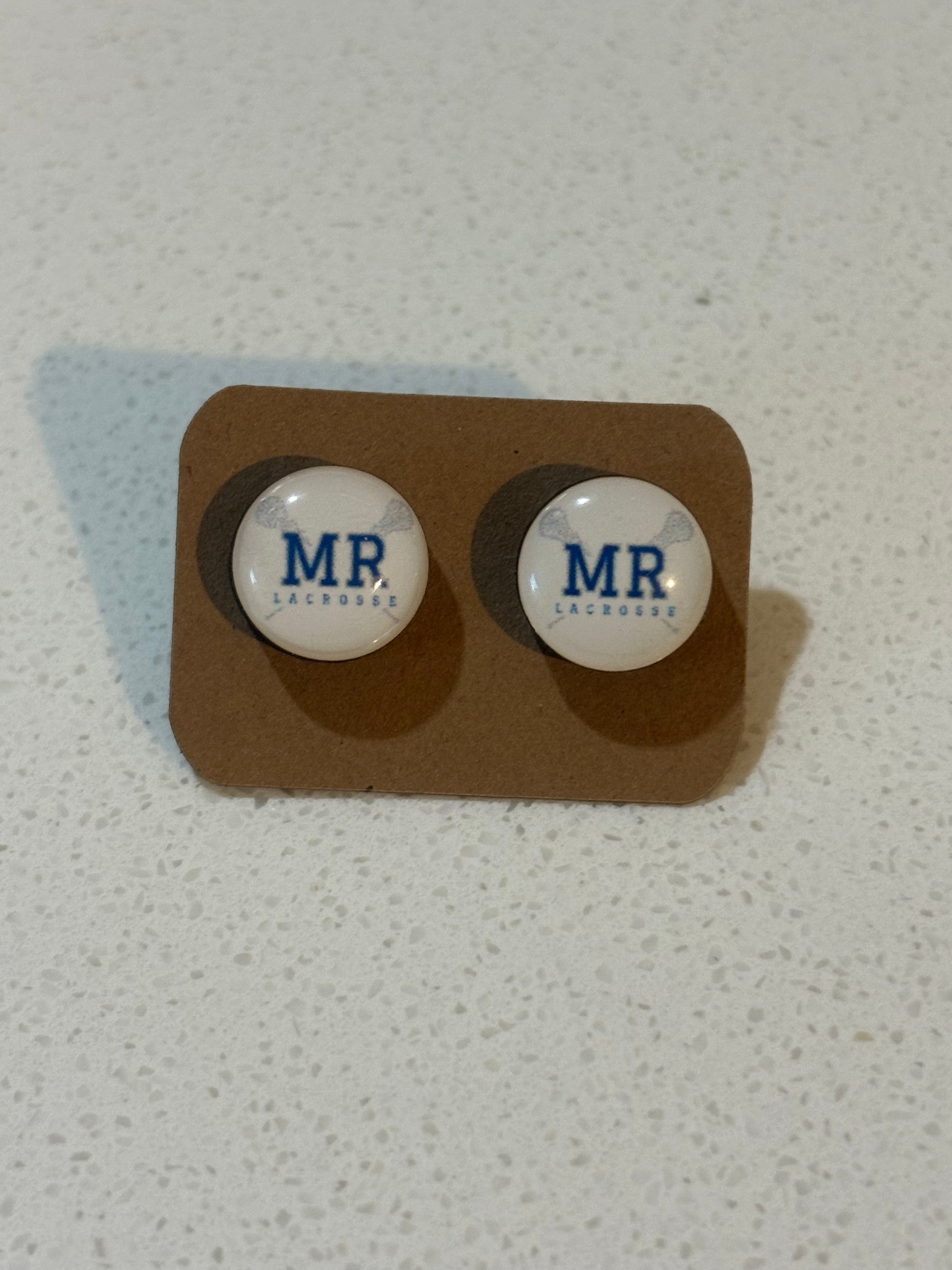 Stud earring personalized Logo and your players number or two logos. The stud backing is made from stainless steel and very friendly to sensitive ears.