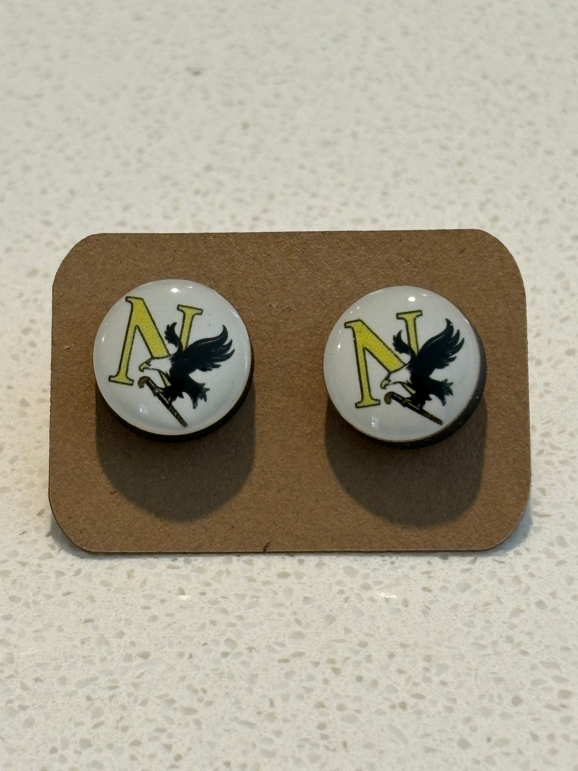 MDF stud earring sublimated and personalized with team Logo and your Players number or two logos. The stud backing is made from surgical stainless steel and very friendly to sensitive ears.