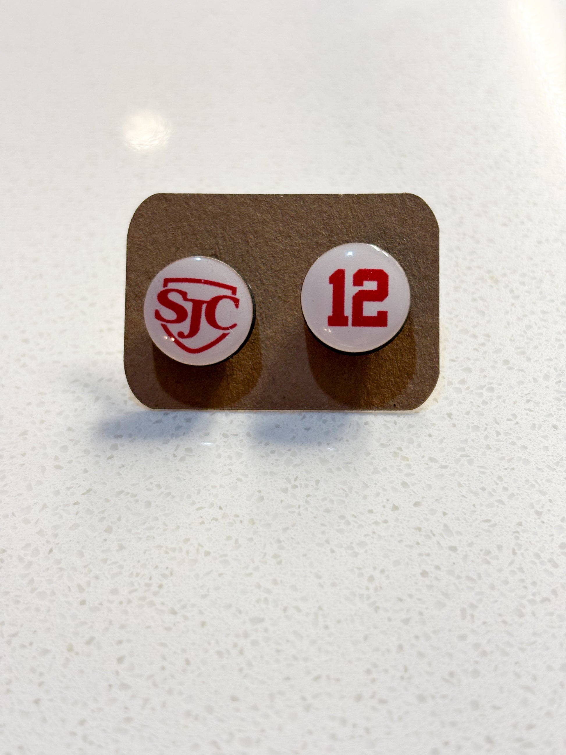 MDF stud earring sublimated and personalized with team Logo and your Players number or two logos. The stud backing is made from surgical stainless steel and very friendly to sensitive ears.